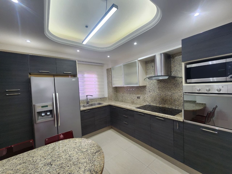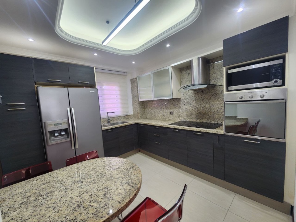 Apartamento en Edificio Mayorquina, Tierra Negra. 154 m² con 3 habitaciones + servicio, 3.5 baños, family room. Pisos de parquet. Cocina y lavandería equipadas. 2 aires centrales, tanques de agua con hidroneumático. Estacionamiento doble, salón de fiestas y vigilancia. Piso bajo.