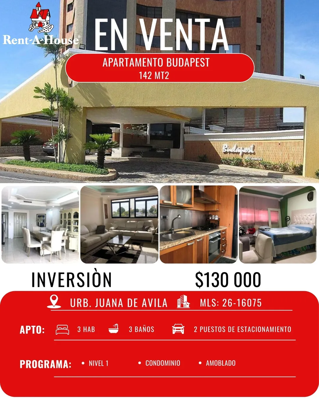 Apartamento de 142 m² en Juana de Ávila, piso bajo. Totalmente amoblado con acabados premium. 3 habitaciones con baño, baño de visita y servicio. Áreas comunes con piscina, planta eléctrica y pozo. Seguridad y confort.