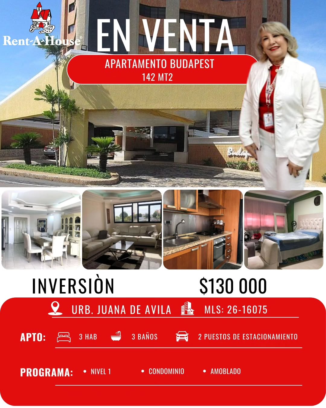 Apartamento en Juana de Ávila, 142 m², en piso bajo y amoblado con acabados premium. Incluye 3 habitaciones con baño, baño de visita y servicio. Áreas comunes con piscina, planta eléctrica y pozo de agua. Seguridad y confort garantizados.